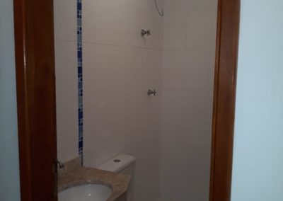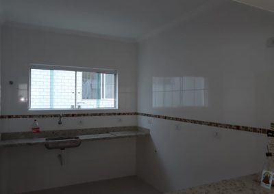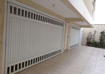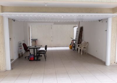 Garagem com portão de alumínio para até 2 automóveis, wc de serviço, área de serviço descoberta , pia, chuveirão e churrasqueira.